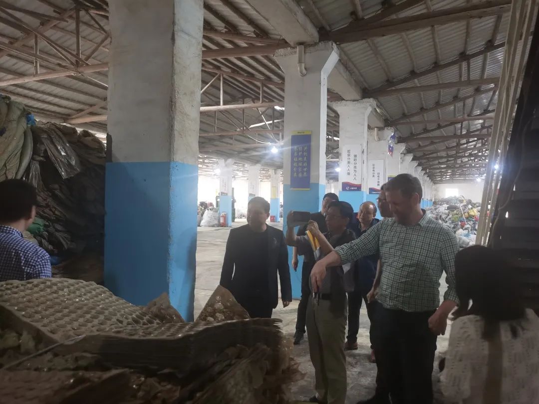 专家组一行在长沙市望城区区城市管理和综合执法局副局长的介绍下参观考察了望城区垃圾分类环保展示厅,对望城区的城乡垃圾分类模式和运营体系有了一个基本全面的了解。随后一行人莅临蓝岛,现场考察了农膜、农药瓶、抛秧盘等农资的分类收集、回收、打包和存储工作。