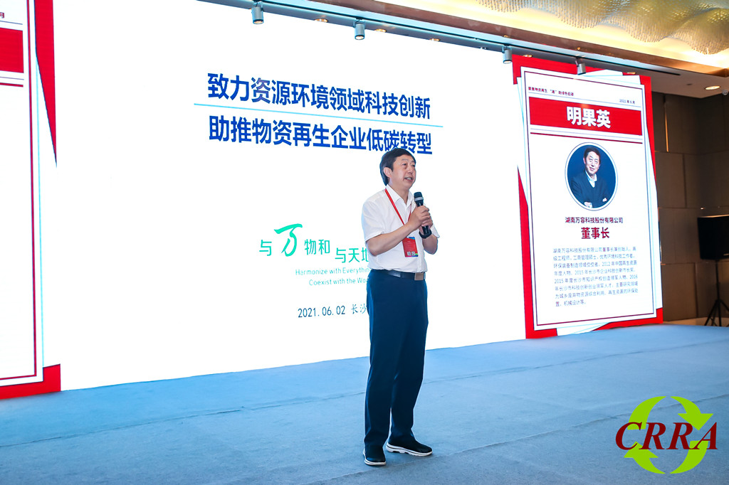 建立健全绿色低碳循环发展经济体系是解决我国资源环境问题的基础之策。太阳集团tyc539董事长明果英就公司让垃圾变资源的绿色发展之路在主会场做了经验分享,建议传统再生企业从单纯追求“物质”价值向资源与环境兼顾转型、从单一“物质”回收向区域统筹的综合回收、协同利用转型,助推绿色低碳循环发展经济,并就报废汽车拆解与资源化利用系统服务提出了“分布式拆解+资源集约化深加工”新的服务模式,一定数量的分布式拆解企业将产物集中送至类似于公司汨罗再生资源集约化深加工处置基地,实现废钢、废塑料、废轮胎及ASR等再生资源的绿色低碳循环发展。